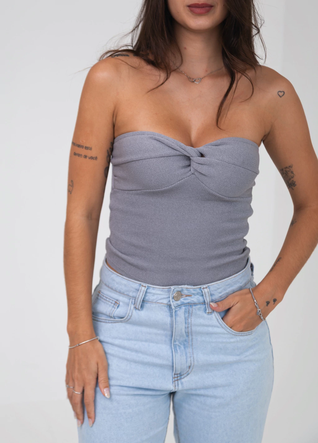 Detalhes: peça extremamente confortável, design tomara que caia com decote cruzado.