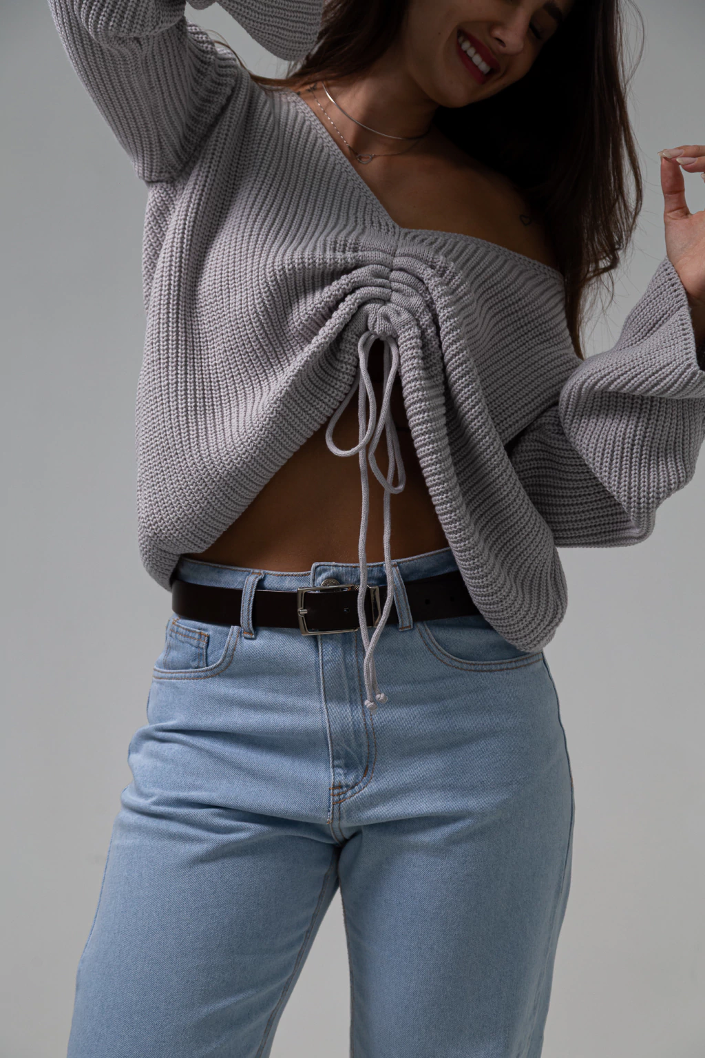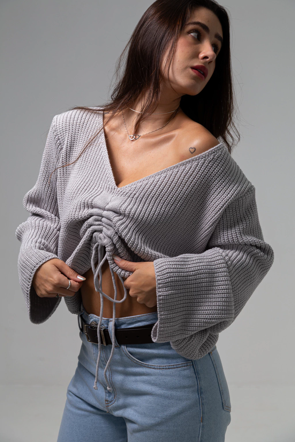 Detalhes: design com decote em V, podendo ser usado com um ombro de fora. Ajuste na frente com regulagem. Tecido e modelagem com ótimo caimento, mangas mais larguinha.